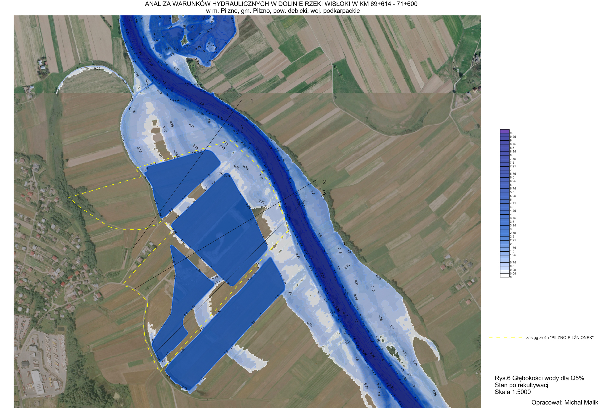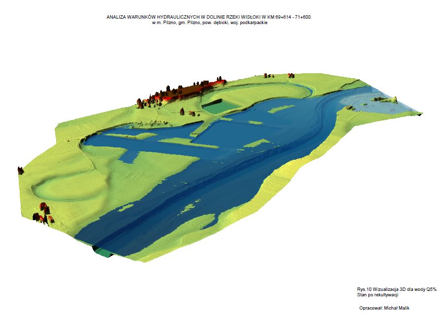 - Analiza warunków hydraulicznych w dolinie rzeki Wisłoki w km 69+614 ÷ 71+600 w m. Pilzno, gm. Pilzno, pow. dębicki woj. podkarpackie